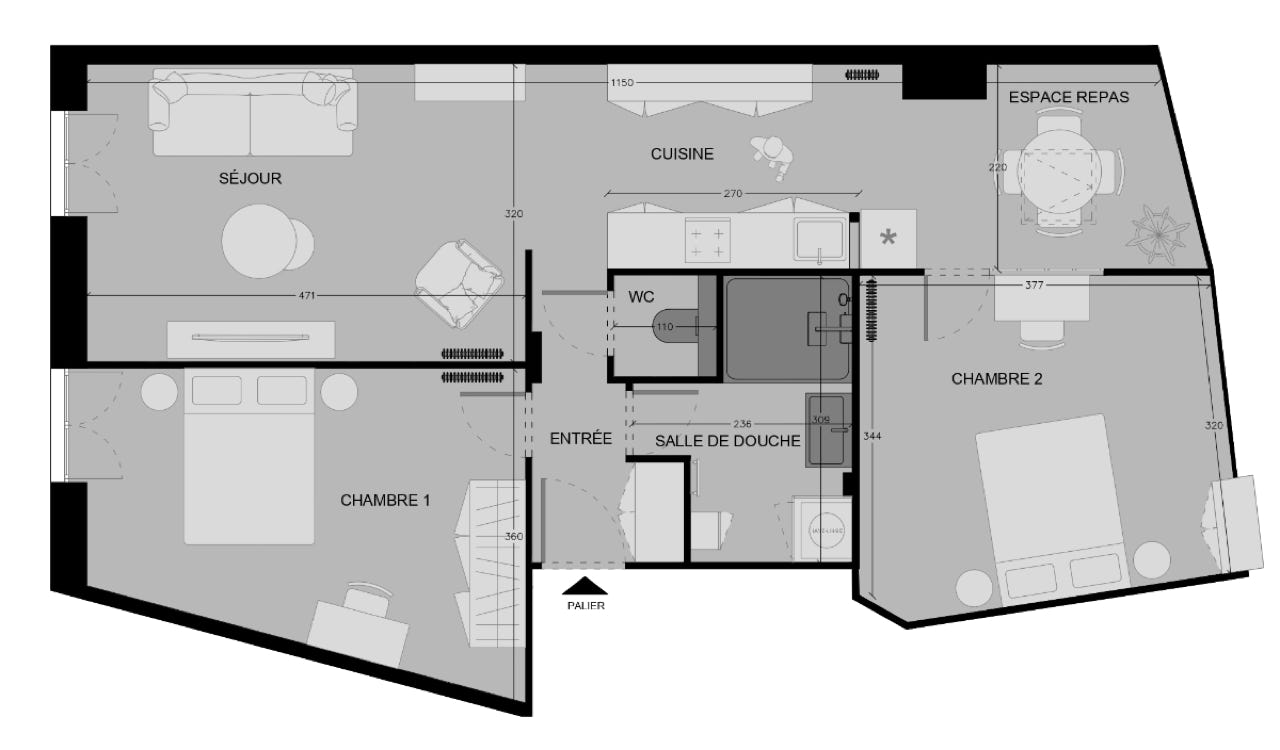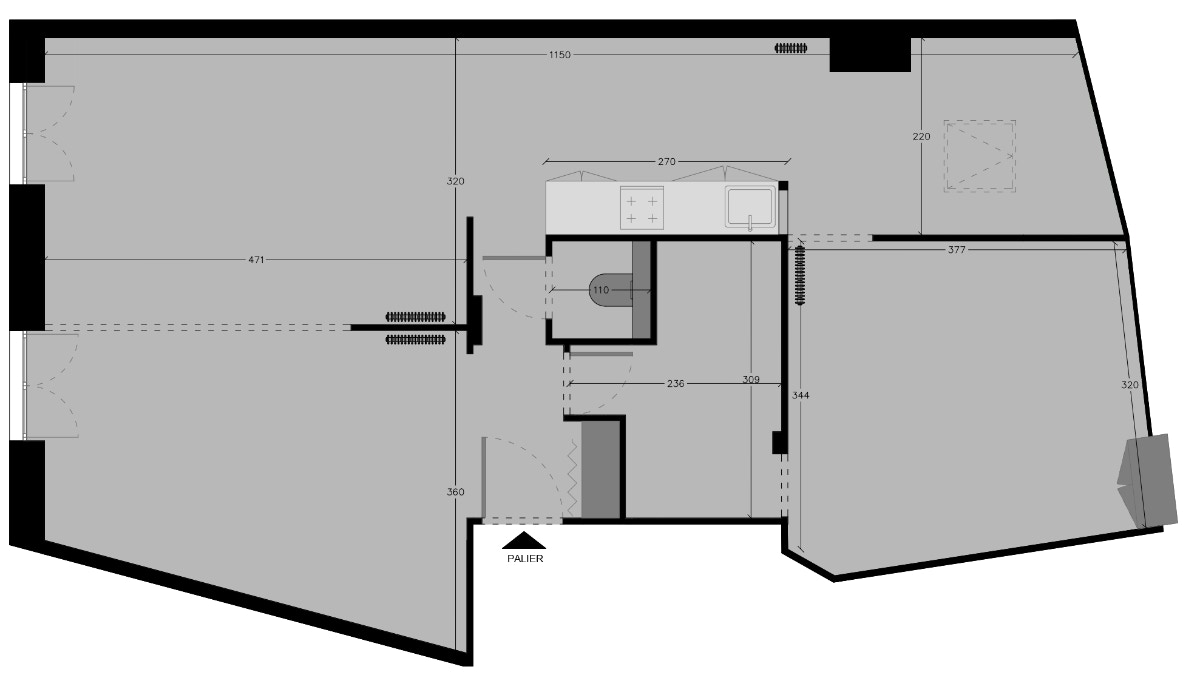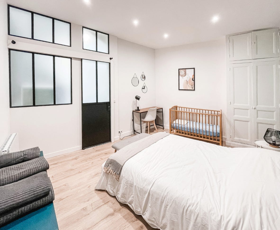 • Réorganisation du plan complet de l'espace afin de créer deux chambres