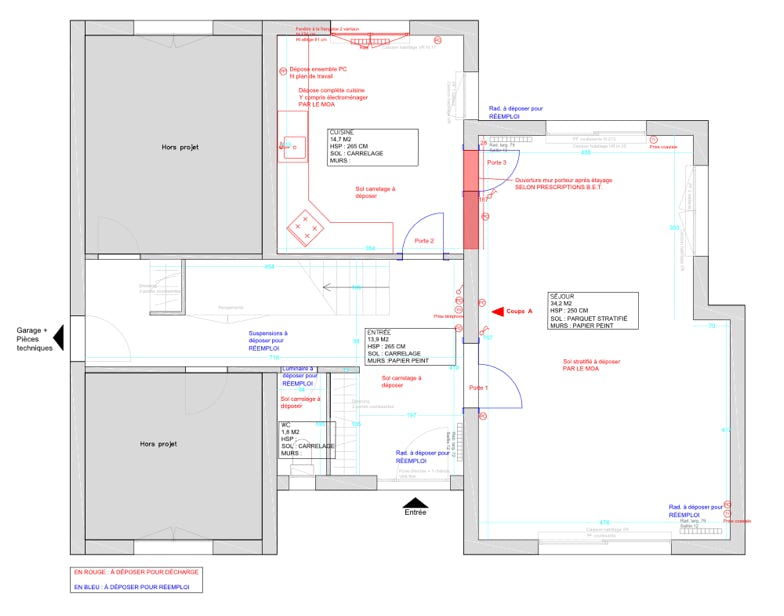- Plans techniques (démolition, électricité...), et descriptif par lot des tâches à réaliser et des matériaux à utiliser par les artisans